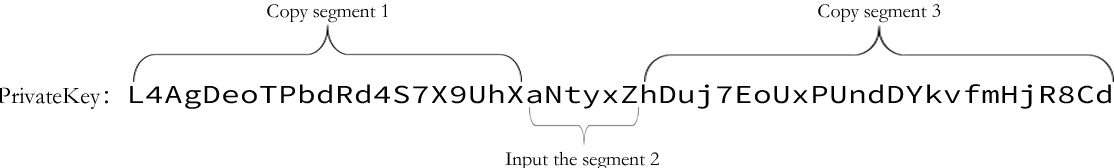 (4). When copying and pasting private keys, use the three-segment method: Copy and paste the first